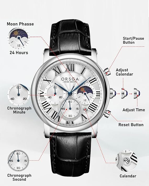 طبعاً، كل العقارب والعدادات اللي كتشوفها في ساعة ORSGA شغالة 100% وليست مجرد ديكور.